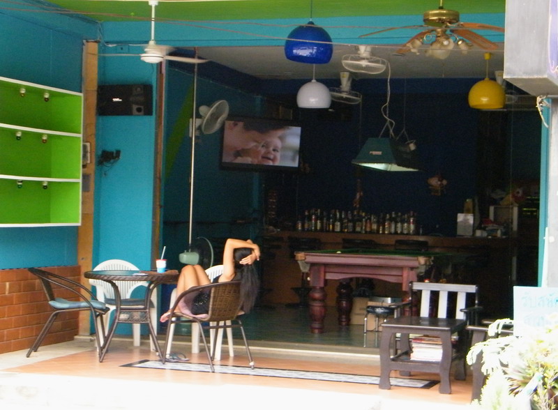 Моя виртуальная свояченица, а то и тещенька Нонг на боевом посту  А справа мой любимый столик, удобный диванчик задвинут и его не видно.