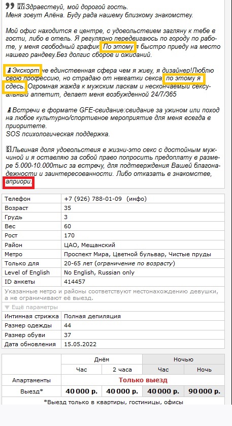 Уходила в очередной БАН за обман клиентов и в очередной раз вылезла с ценой 40000 рублей уже Сейчас дизайнер, раньше была экономистом-международником, совладелецей медклиники .. осталось только балериной стать на кривых ногах.. кручу-верчу короче Если кто будет -скажите чтоб хоть орфографические ошибки исправила (желтым) и смысл слов понимала (красным). АПРИОРЕ != АМИНЬ https://www.intimcity.nl/persons.php?id=414457