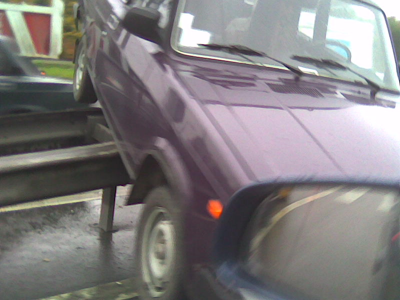 Все,проезжающие по Университетскомуи проспекту на Минскую улицу или Мичуринскому проспекту, утром могли наблюдать презабавную картину.На разделительном ограждении висела машина - эдакий фиолетовый,созревший баклажан,без видимых,с моего ракурса, повреждений. Что успел снять мобилой выставляю как образец искусства вождения, более свойственного для газелей.