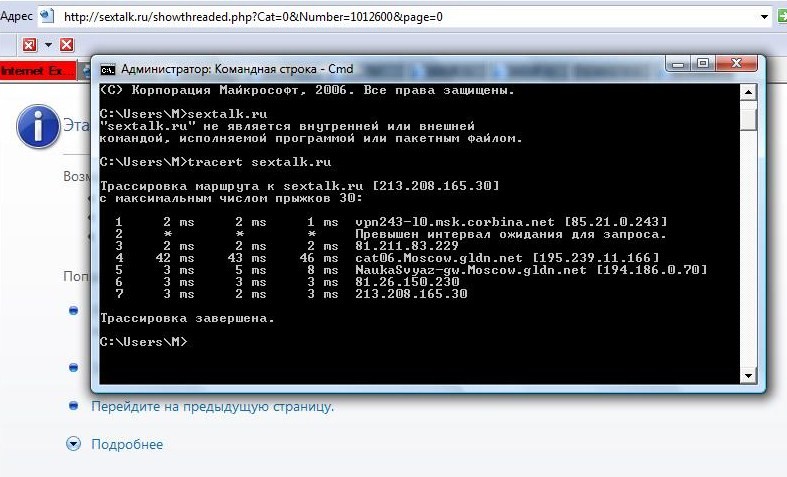 т.е. ты не пробовал в этот момент открыть другие сайты? Так же попробуй пропингуй секстолк а так же комнду tracert попробуй, сразу поймешь, где по пути закавыка, на форуме или до него.