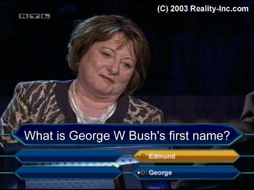 А вот ещё одна участница. Здесь не нужны никакие объяснения. Дама поставлена в тупик первым же вопросом - «Как зовут по имени Джорджа Буша: