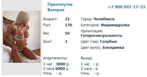 1. https://cheleba.org/girls/7167.html - тел 7 904 819-28-21 2. https://cheleba.org/girls/7166.html - тел 7 905 830-61-80