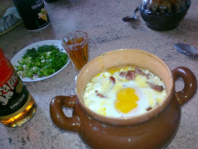 понравилось... но потом решил слегка изменить рецепт:добавил шампиньонов и еще выжал в горшок немного лимона перед тем, как отправить в духовку... от сыра и яйца можно и отказаться... получается тоже весьма недурно...