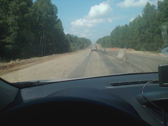 15 километров жосткой яйцетряски!!!! Причем в сторону Ржева еще подобие покрытия есть, в обратную сторону чисто по земле в перемежку с камнями...  В час пик две фуры разъедутся с трудом...