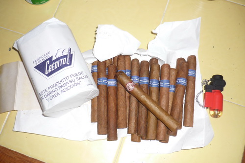 El Credito сигары «сухие». Местные курят их так. Распечатав бумажную упаковку, рядом с ними помещают стаканчик с водой, а вокруг посыпают крупной солью. Это необходимо для того, чтобы сигары набрали необходимое для комфортного курения количество влаги. Довольно-таки странный фокус, исходя из того, что на Кубе оптимально влажно и сигары нет необходимости дополнительно увлажнять