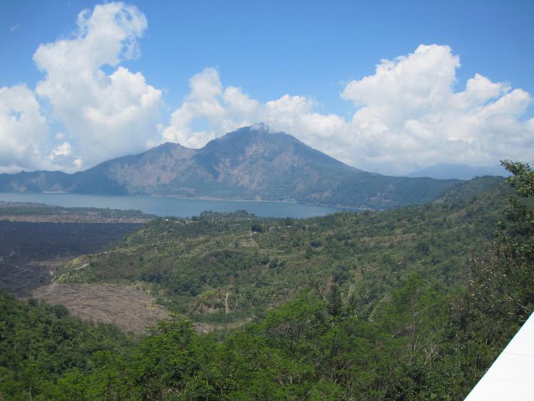 любопытное это зрелище вот гора эта стоит в жерле потухшего вулкана это жерло хорошо видно а вот этот вулкан сам находится в жерле древнего вулкана занимает, вроде, 2/3 его воронки