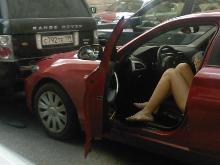 Утешением для водилы стали красивые ножки невнимательной владелицы БМВ