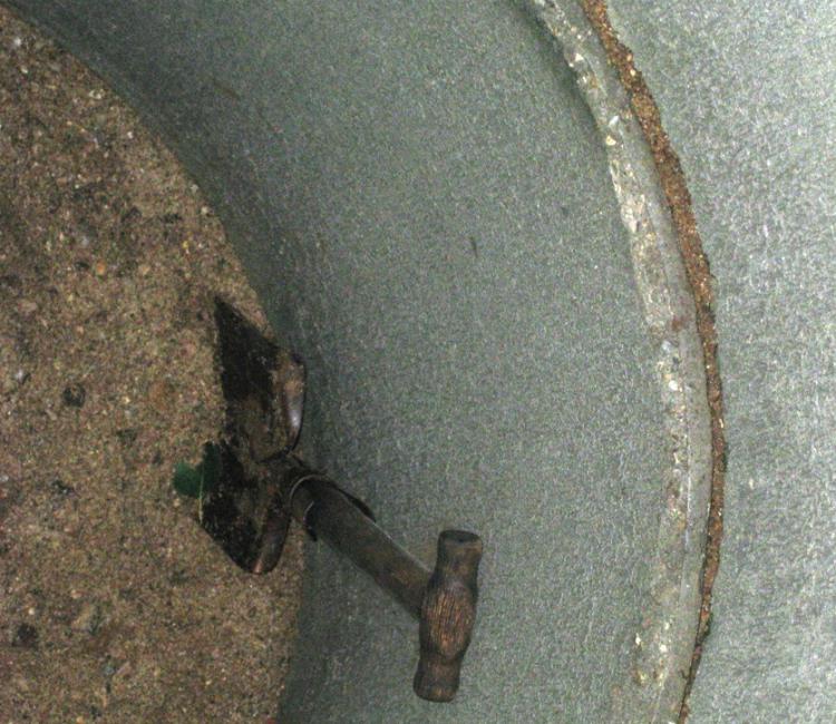 с 7 кольцом пошел белый мелкий песок (как на море), совершенно мокрый. А спустя пол кольца появились лужицы воды, которые скоро слились в один круг. Пошли ведра с рыжейот песка водой. Удручает, что из-за кривизны в это круглой луже отражается полукруг, а не полностью верхнее отверстие. Надеюсь, что это не сильно отразится на функциональности колодца