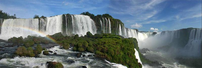 Давно дело было, снимал ещё на плёнку, до сих пор не перегнал в комп. Если кратко, то так: была небольшая работёнка в Риу-Гранди, что на самом юге Бразилии. Оттуда до Игуасу всего-то 1000 км, то есть фигня. Взяли с коллегами машину напрокат, за два дня смотались. Дороги писец, пожрать негде, жара, влажно, сезон дождей. Зато водопад во всём великолепии. Говорят, с аргентинской стороны вид лучше, но дело было до безвизового въезда, так что мы не поехали туда.