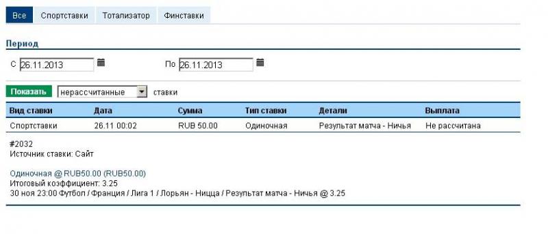 Очередная игра состоится 30.11.13 Лорьян - Ницца, коэффициент на ничью - 3,25.
