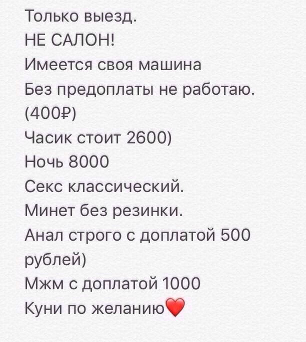 - деньги сразу при встрече, - приходит от нее сообщение. - ОК, в гостинице, в номере сразу рассчитаемся, - отвечаю я - в таком случае встреча не состоится, извините, - приходит мне в ответ. Разумеется, я отказался от встречи. Выходит, деньги я ей должен был отдать прямо на улице. Первый раз со мной такое. У кого-нибудь был подобный опыт? И еще деталь, на которую не обратил внимание сразу, когда переписывались по вотсаппу там появилось предупреждение, точный текст не помню, что-то вроде - вам отвечают со служебного номера или как-то так, что это означает?