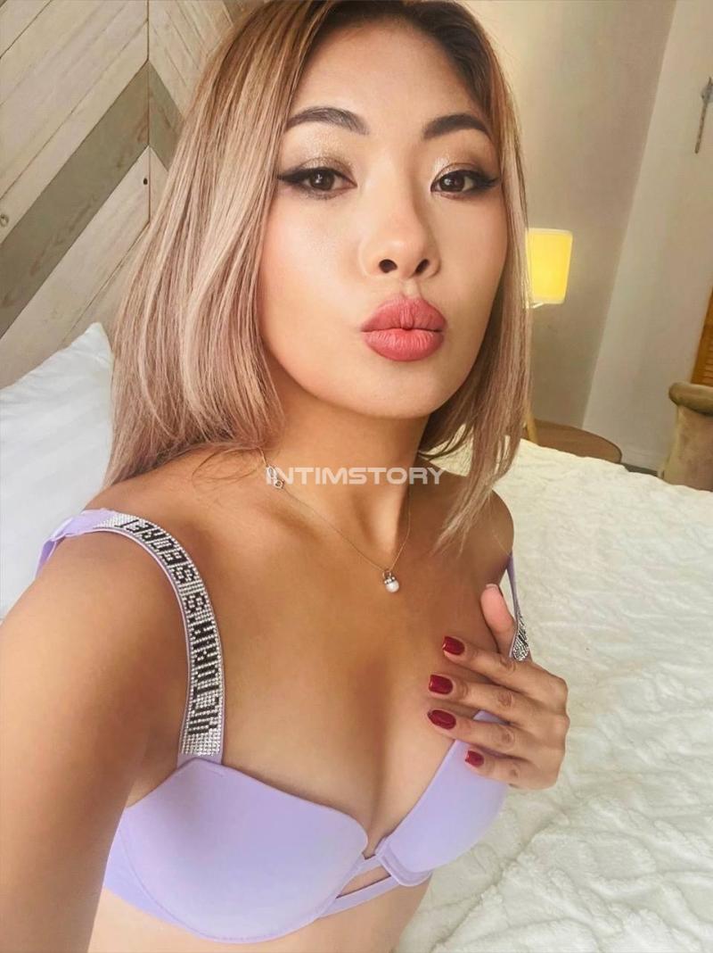 ТТХ. Всё как на фото. Лицо очень симпатичное, восточное, выглядит моложе заявленного возраста, максимум на 25, имхо. Глаза карие, с большими нарощенными ресницами. Губы большие и красивые, думал подкаченные, но сказала: "у меня всё натуральное".. Волосы прямые, светлые с мелированием (сказала, что недавно сделала), ниже плеч (свои чёрные). Рост 160, вес сейчас 47кг, сказала, что "за неделю работы в салоне похудела на 2кг". Взвешивалась. Грудь очень маленькая - 0,5 как у девочки подростка, с торчащими маленькими сосками (чувствительные к ласке). Фигура изящная и тонкая - модельная, пропорциональная и достаточно выраженная, на вскидку параметры: 60-88. Животик плоский как струна (не спрашивал, но думаю нерожавшая). Пирсинга, тутух, шрамов и растяжек - нет. Кожа гладкая и душистая. Попа круглая и упругая. Ноги стройные и красивые. В общем куй на неё (как говорится) встал с порога.. Мой формат. По-русски говорит как мАсквичка.