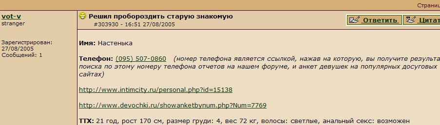 Малоуважаемый vot-v, он же проверивший анкету на intimcity Настенька 1983, он же Camel, он же manumba, он же АНТИ, BAD, он же Viniamin_Puxov, он же AlexValex, он же superbob, он же Карандаш, он же HAZY, он же папуасс, он же Aknot.