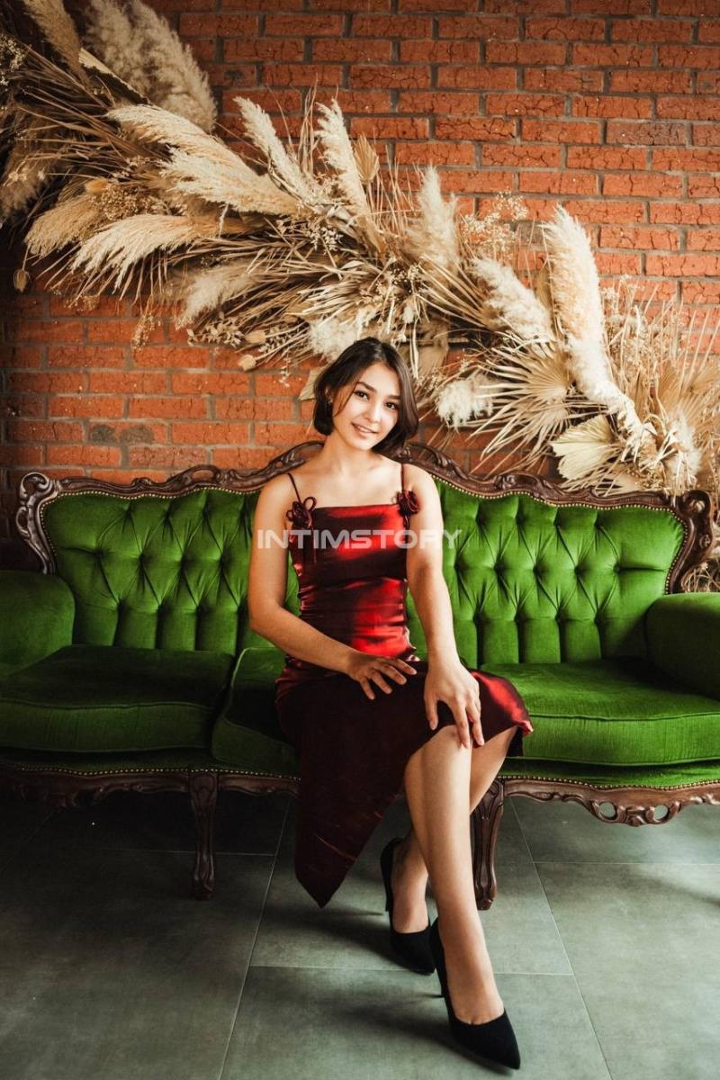 Встретила администратор Мария, поднялись по винтовой лестнице на второй этаж в холл заведения (на первом этаже ресторан). Там меня ждала красавица Диана с обворожительной улыбкой на лице. Из одежды на ней было фиолетовое длинное вечернее платье в обтяжку (хорошо подчёркивающие её фигуру), под ним белые кружевные трусики и больше ничего.. Была в чёрных туфельках на шпильках (7см) и в красивом макияже. Похожа на казашку (подумал я). Подарил ей коробку конфет "Ассорти", очень обрадовалась и поцеловала меня в щёчку. В салоне была тишина, только уборщица пылесосила ковровые дорожки в холле (пересменок). Сразу повела меня в маленькую гостевую комнату (справа от холла), свет там был приглушённые, регулятор яркости света не нашёл.. Предложила чай, кофе. Говорю: "ну если только за счёт заведения любимому гостю, а так дорого".. Пожала плечами.. Достал из пакета свой походный термос с чаем из бергамота, выпил стакан и покурил (принесла пепельницу). Смотрите фото - отчёт. Познакомились и минут 10 пообщались. Рассказала, что "приехала покорять Москву из Уфы, по национальности башкирка.. в салоне работает несколько дней, раньше в этой сфере не работала.. трахацца начала в 16 лет.. любит как нежный, так и жёсткий секс.. к хлопкам по попе и к грязным словечкам относится нормально.. в жОпу не даст, Анал никогда не пробовала..". Озвучила допы. Поцелуи - 3к, ОВР (с проглотом) или Окончание на лицо - 10к. Говорю: "я поцелуи за деньги не покупаю, а в ротик кончу тебе в презервативе бесплатно". Ответила: "хорошо, люблю когда кончают в ротик".. Отправились в комнату для стриптиза. Из другой гостевой комнаты (напротив лестницы) вышли два молодых мужчины (похожие на героев СВО), а вместе с ними две знакомые феи: 1. Эмили (вьетнамка), трахал её в прошлом году, в начале её карьеры. https://pa.intimcity.lol/indi/anketa727987.htm 2. Мелисса, познакомились с ней на кастинге, в начале её карьеры. https://pa.intimcity.lol/indi/anketa730553.htm Обе феи были в одинаковых очень коротких черных платьях с блёстками и в чёрных туфельках на шпильках, были в красивом макияже, с распущенными прямыми волосами до пояса. Мужики предложили нам присоединиться к ним и устроить групповушку: МЖМЖМЖ. Ответил: "боюсь не справлюсь с тремя красавицами"... Говорят: "справишься".. И они уединились с феями в VIP комнате, на групповушку. Все остальные нумера были свободны..