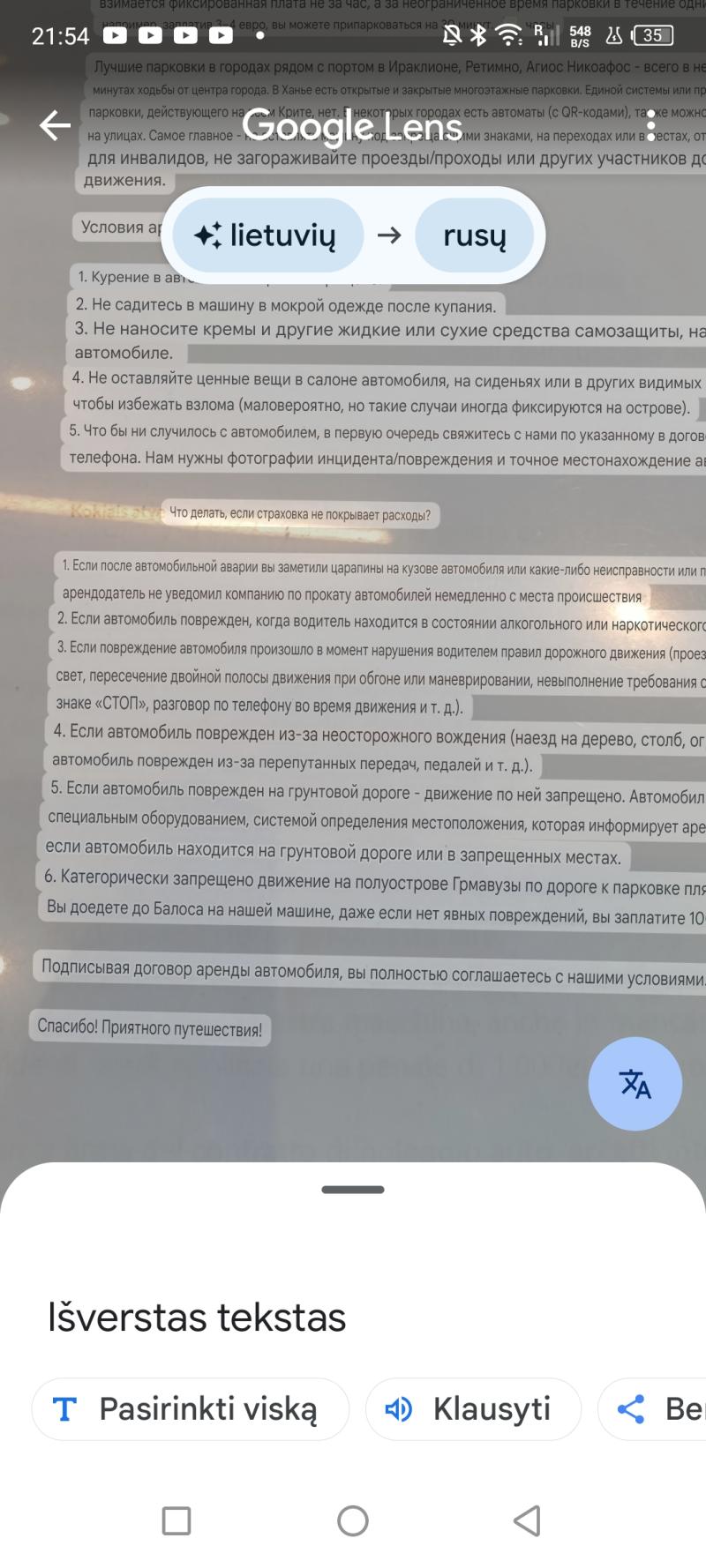 И это фраза жизненная. Вот скажем в отеле есть и мексиканская кухня и и японская ну и греческая само собой. И свинина в любых видах. Но оставило впечатление суп из жаренного лука, который заправлен поджаренной до корочки беконом или свиные ребра в глазуре. Но это вступление. Итак второй раз в жизни в Греции. Заранее снял машину. Условия настолько странные, что не понимаю где подвох. Взял на 3 дня что то близкое к домашнему авто- Фольксваген Тайго на ручке. Машина почти свежая, 36 тысяч пробега. По условиям аренды предоплата 15 ойро (всего 132 ойро за 3 дня без ограничения пробега, без депозита с полной страховкой. Позже скину скан условий страховки, который имхо не подразумевает каску, ибо страховка не действует при умышленном нарушении ППД, так и при неосторожности. Ещё в первый день управляя авто ( причем по горной дороге) заметил, что меня временами плохо слушается руль. Подумал, что подвох в плохом техническом состоянии авто и неисправном рулевом управлении. Потом понял, что это опция "удержание полосы", когда автомобиль сам подруливает за водителя, чтобы авто оставался в своей полосе. Но откуда мне знать неискушенному современной техникой. Итак сканер условий договора, переведенный ИИ Перевод корявый, но нижняя половина перечисляет условия, когда страховка не действует. Обобщая страхока не действует когда вина (умышленная или по неосторожности) сьемщика, то бишь, вопрос, насколько такой договор правомерен