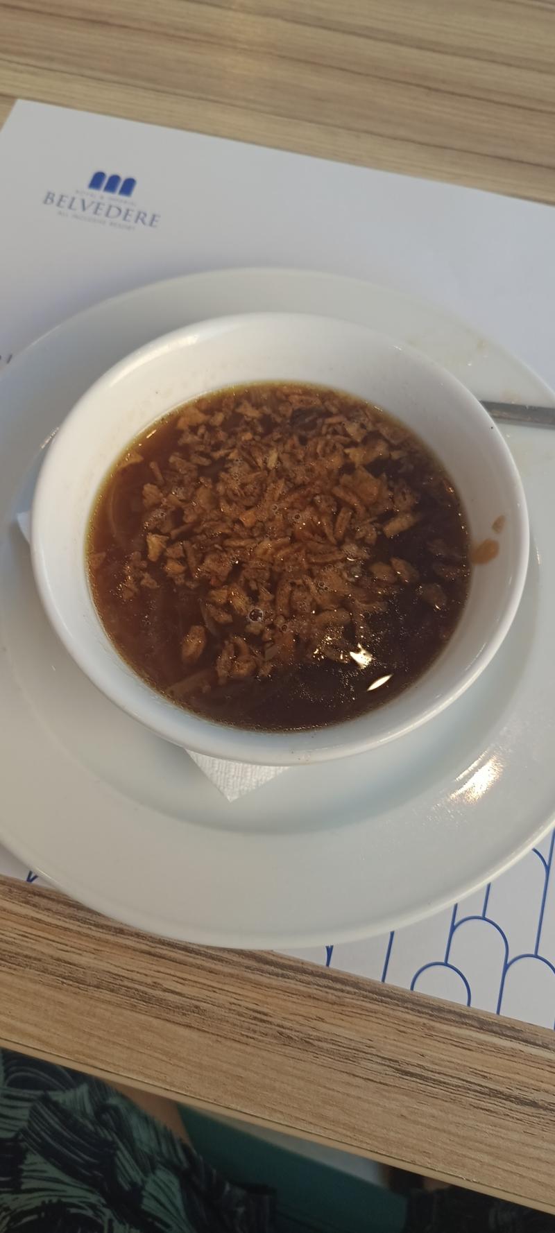 Фото супа жареного лука и крошек из шкварок