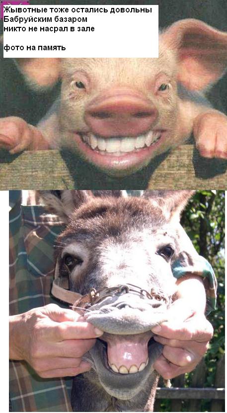надо было Ксюхе дунуть в трубу со всей силы... ишак бы обосралсИ в пакет который у него под хвостом висел, а поросенок стал бы судорожно бегать по залу визжать и хрюкать под аццкий хоровод во креатиффчик бы получилсИ настоящий базар епта