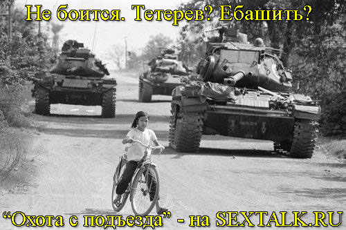 Коментарий к фото с девочкой на лисапеде: U.S. Tanks Drive Through Vietnam VIETNAM - UNDATED: A refugee girl escapes the fighting as U.S. military tanks drive on the road near Lai Khe, Vietnam in 1972.