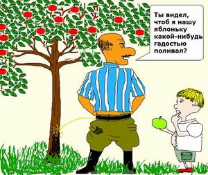 "А ты видел, чтобы я наши яблочки какой-нибудь гадостью поливал?"