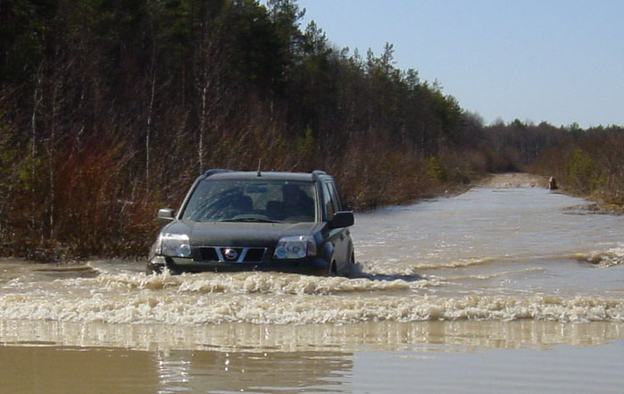 На пикче папелатс куячит по дороге которую подло перегородила маааалинкая лужица. Для проезда поперек, ак сделал бы настаящий джипер, нужно было бы заехать слева в кусты, зарытсо диагоналкой в пожарной траншее, усадив в придачу задний мост на пень, после чего достать джека, сенд-траки, отджечитсо, подложить под мост трак, рсчехлить лебеду, перейти в брод лужу, волоча за собой трос, найепнуца в лужу, потому как стопор свободного хода лебеды как то сам-обой защелкнулся в положение "лок", зацепиться, отлебедиться, собрать раскиданый шмурдяк и ехать дальше.