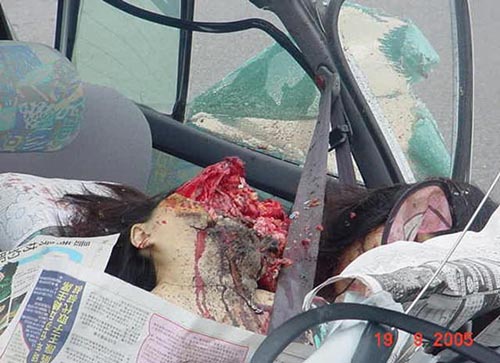 Тогда уж не этот плакат - ни бухого водителя, ни непристегнутого пассажира там нет - загнал идиот машину под автобус, срезав подружке пол-черепа - мяса много, воспитательный эффект - ноль!