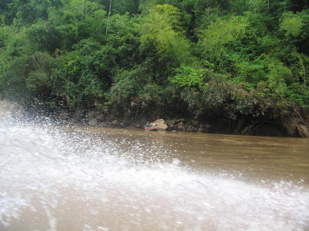 Как же здорово плыть на лодочке по реке Квай. Малой Квай. Справа и слева один причудливый пейзаж сменяется другим. То густая чаща деревьев, растущая прямо на скалах, то пологие пласты из песка. Красота...А как прикольно сидеть в лодочке. Никаких тебе скамеечек, сидишь прямо на полу, только рев мотора и огромные брызги по бокам.