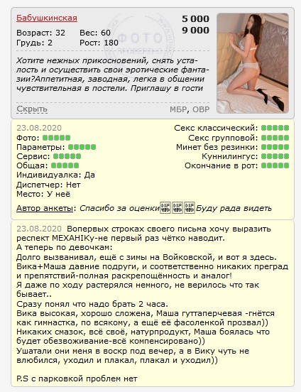 Девченки симпатичные, Вика вообще под 180 см без каблуков…В процессе обычно берут инициативу на себя, ласки по телу, минет в два рта.