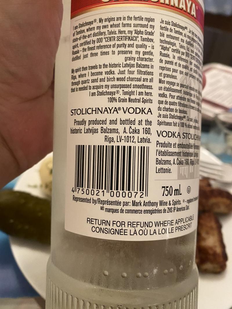 Захотелось банальной водки. Закусон соответствующий дома имелся. Заехал, купил, не особо заморачиваясь на "Серых Гусей" и прочие "Абсолюты". Откушиваю, закусываю... И тут мой взгляд на этикетку падает. Нет, много лет назад я здесь пивал водоку со значком СПИ на бутылке. Но эти запасы давно иссякли. И тут я вижу.... Гарь, я помню, как ты в патриотическом угаре гордо шпроты отвергал. Я, таки, нет. Ел и ем. А тут изумился - а с чего это "Столичная" делается во вражеской Прибалтике? В России разучились делать? Не, то, что здесь куча Порошенковских сладостей, маде ин раша, никого не удивляет. Бизнесу плевать на честь, кровь и страдания. Но ситуация с водкой - меня реально удивила.