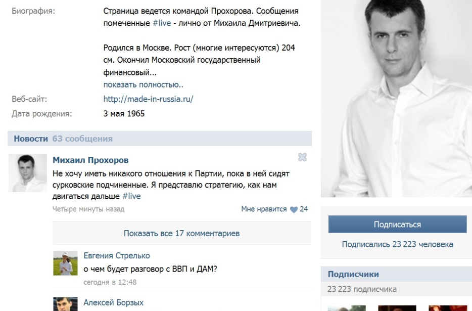Re: Не ставьте знак равно между Прохоровым и оппозицией. Нет там его (-)
