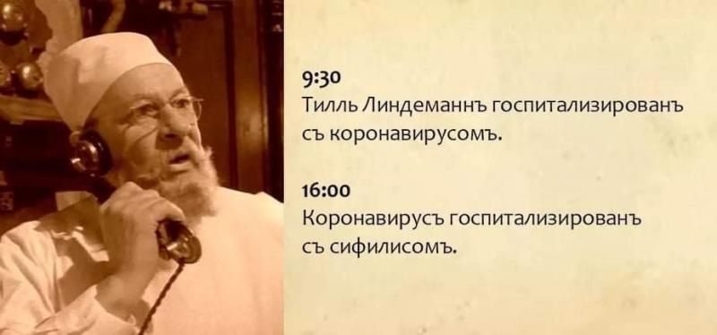 . * * Тиль из Рамштайна подцепил коронавирус, всем проституткам из клипа требуется добровольно явиться для взятия мазка иначе:  Exolon    29/03/2020 00:13:13