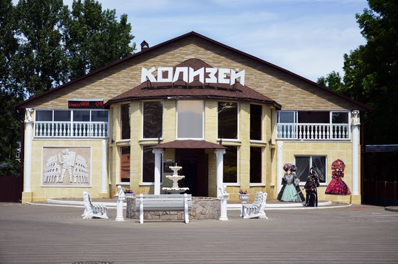 Дом, который Вы показали на фото, стоит и сейчас под №251 по улице Свободы (символичное название). Сейчас там центр досуга "Колизей", работающий ежедневно с 12 дня до 4 утра. Вид у него изменился. Окна заложили блоками, вывеска на стене, а не крыше. Название это популярно в нынешней России, которую не покидают мысли о несостоявшемся Риме (третьем или четвертом).