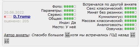 P.S Странно, что Вы только сейчас всё это заметили. P.P.S Если анкета отключится или снимется с платки, то отзыв может появится. Определить платная анкета или нет можно по наличию указанных ТТХ под оценками в ленте феи и в ленте дона, если в ленте Дона они указаны, а у неё нет -анкета платная. Пример анкета https://www.intimcity.nl/persons.php?id=440237 вес 60 кг в моей ленте, у неё в ленте нихт
