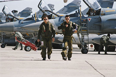 Такие вот зеркальные войны, такие вот «зеркальные» фильмы. Вот только «Рыцарей неба» от своего российского собрата отличает качественно подобранная звуковая дорожка, а также более захватывающие и, надо полагать, более дорогие сцены воздушных полетов на сверхзвуковых скоростях. Голубое небо, белоснежные облака, ослепляющее яркое солнце — этот завораживающий калейдоскоп быстро сменяющих друг друга образов за стеклом кабины самолета впечатляет гораздо сильнее, чем сами сюжетные перипетии фильма.
