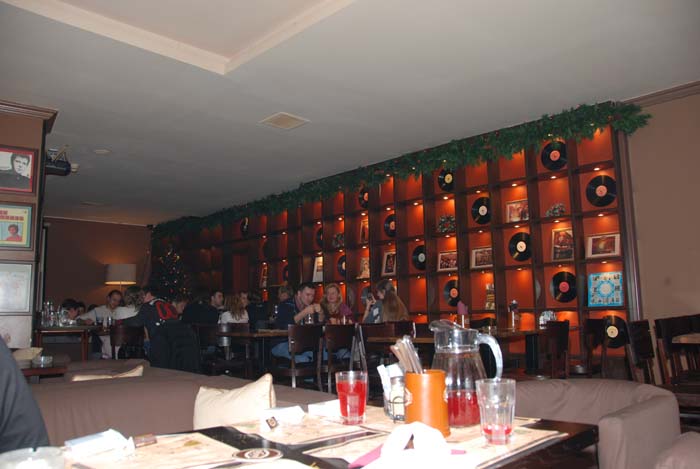 Смотрели там футбол Армения - Россия. Еда дерьмовая!!! Ел уже не помню что, но все было абсолютно безвкусным На горячее подали какое-то мясо, из раздела "фирменные блюдА". Такое ощущение, что его сначала отварили, потом оно остыло, потом разогрели в микроволновке и подали как горячее блюдо (блюющий смайлик) Категорически не рекомендую! Телеки маленькие - нифуя не видно и не слышно.