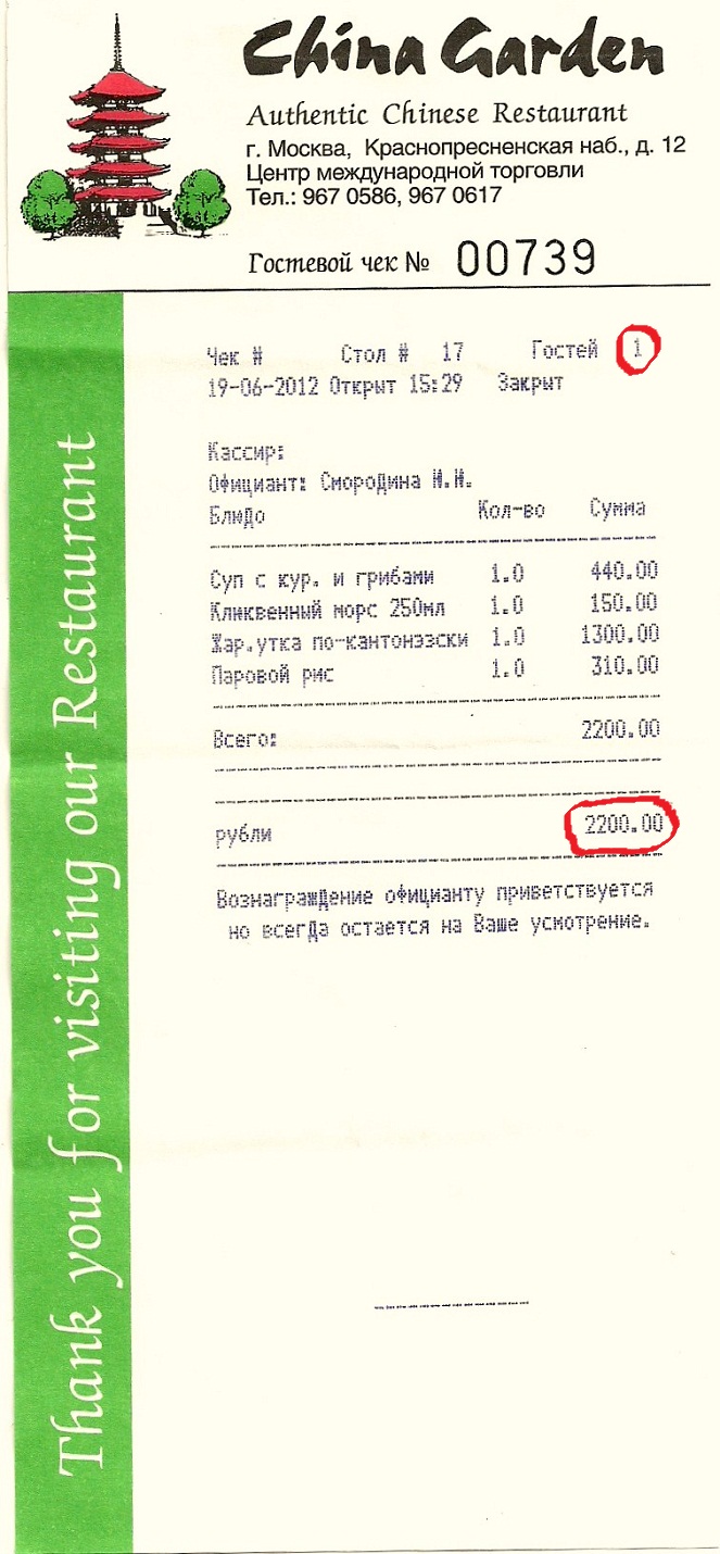Судя по чеку твоя офисиянтка была совсем не узбечкой