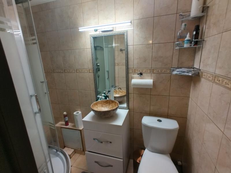 В душевой комнате (смотрите фото - отчёт). Сняла туфельки, собрала волосы в пучок и мы залезли в достаточно просторную кабинку.. Сначала я помыл её, поливая тёплой водой из лейки, всё время целовались, лапал её сиськи.. пальцем стимулировал клитор.. Потом она помыла меня всего с ног до головы с гелью.. Говорю: "теперь вставай на колени красивая сучка и соси!" Встала на колени (на коврике), обработала куй и яйца КЖ и мастерски одела презек ртом и руками. И стала сосать на полствола, придерживая куй рукой.. Убрал руку и говорю: "соси на всю длину куя и смотри в глаза красивая сучка ".. Стала заглатывать куй целиком, слюни текли, но старалась как могла, долго полный заглот держать не может, начинается рвотный рефлекс, поэтому до горлового пока не дотягивает, а глубокий зачёт! Сосала в разном темпе и языком по стволу хорошо работала.. Потом тщательно вылизала яйца и смотрела в глаза.. Поставил её лицом к зеркалу (в кабинке) и спиной к себе, нанесла смазку на презек, сжала ноги в коленях и хорошо прогнула назад попу.. Аккуратно вошёл в неё, вход узкий, расположен высоко "королёк" (удобно епать спереди), обхват плотный, просто кайф! Стал нежно трахать её, придерживая за бёдра.. звонко хлопнул по жОпе и крепко сжал руками её сиськи.. она стала интересно пальчиком дрочить свой клитор и потом дрочила его на протяжении всего процесс, нравится ей мастурбировать, сказала, что "так себя сама удовлетворяла, когда небыло мужчины".. Вылезли из кабинки, одела туфли. Прижал её жОпой к раковине, встал на колени (на мягком коврике), она раздвила ноги и я сделал ей Куни.. засунул палец в пелотку на всю длину и стимулировал стенки влагалища.. от этого действа очень балдела, аж с судорогами на животе.. и крепко вцепилась в мои волосы с громкой озвучкой, похоже аналоговой! Пелотка у неё красивая, со средними губами, как бутончик с раскрывающимися лепестками, клитор чувствительный.. Встал на ноги.. одну её ногу взял под локоть и поднял вверх, она облакотилась руками о края раковины.. так трахал её стоя и целовал в губы, говорил нежные слова.. звезда "королёк", поэтому было очень удобно! Перевернул её на 180 градусов, распустил волосы и жёстко трахал стоя над раковиной, лицом к зеркалу в ЗКП.. одной рукой держа за волосы, второй звонко хлопая по жОпе с грязными словечками.. "изеБу тебя всю красивая молодая сучка, запомнишь как крымчанин епал.. вижу, что епацца любишь.. мой куй тебе нравится?".. Кричит в голос: "да, очень люблю.. член у тебя классный..". Посадил её на крышку унитаза (крепкая), открыл дверь в комнату, встал на колени и сделал ей Куни.. потом трахал её стоя на коленях, но они быстро устали, привстал, взял её ноги под локти, наклонив назад (почти до самого лица) трахал её на унитазе с упором ног о порог.. Перешли в комнату. Презек не снимал.