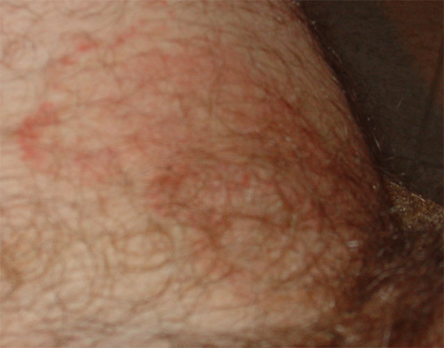 Приветствую членов КЛС и обращаюсь за советом. Вот уже месяца как 3-4 в паху на внутренней стороне с обеих сторон появилось раздражение. Думал, что может быть связано с ЗППП, но через пару недель после последнего секса сдал анализы, все чисто. Показался врачу - тот успокоил, типа фигня, назначил "Тридерм". По инструкции обрабатывал раздраженную поверхность - цвет раздражения постепенно бледнел, но оно все равно не проходило. Если прекращать обрабатывать, то опять начиналось покраснение. Выделений никаких, гнойников никаких. Но фиг знает - напрягает меня, что время прошло, лекарство было применено - а хрень эта не проходит. Возникают мысли что обшибится мог врач. Отсюда вопрос - кто может по фоткам определить на что это похоже и чем лечить - ВЭЛКАМ!! Очень жду ваших комментов. Заранее благодарен.