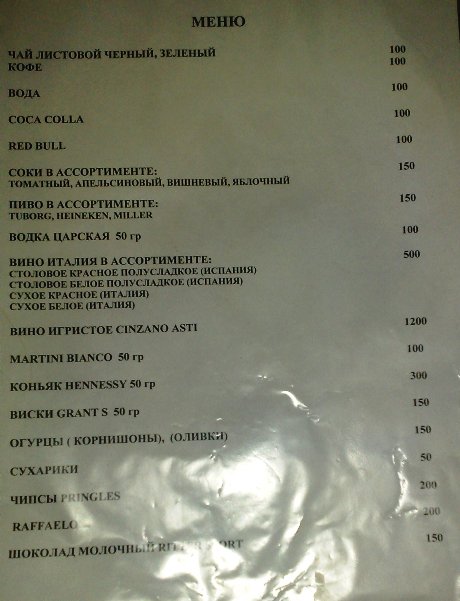 Прикрепляю меню, которое я сфоткал в этой конторе (если, конечно, цены на прохладительные и прочие напитки и закуски не выросли вместе с ценами на девочек...)