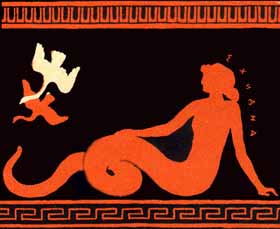 Ехидна — чудовищный демон, полуженщина-полузмея, дочь Тартара и Геи. От Тифона Ехидна родила множество чудовищ: Химеру, Кербера, Лернейскую гидру, Немейского льва, Сфинкса. Местопребыванием Ехидны считались Аид, Скифия или пещера в Киликии. По позднейшему мифу Ехидна имела от Геракла трех сыновей; один из них - Скиф - стал родоначальником скифского народа. Ехидна убита Аргусом во время сна.