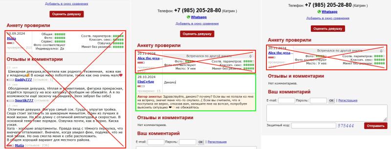 Решаю дать шанс, подождать полчаса. Пока осмысливаю ситуацию в магазине в тепле в шаге напротив дома девушки, где я что-то пропустил, что так попал. Смотрю поиск анкет на сайте по номеру телефона – и тут то я понимаю свой просчёт. Время было вечернее и перед созвоном с девушкой я посмотрел только одну её анкету (а их всего 3, остальные я и не просмотрел). И вот во 2-ой анкете натыкаюсь на отметку о динамо от дона EbuCy4ap (28.10.2024). Тем временем полчаса прошли и я делаю контрольный звонок с нескольких своих номеров, дабы убедиться что мой номер с которого договаривался с феей не заблочили – и как вы уже догадались, абонент не абонент, телефон не в сети (то есть телефон у девушки намеренно выключен), невзирая на звонки с разных номеров. Проверил также в WhatsApp, девушка была в сети за 6 мин. до назначенного времени (а телефон мы помним, не отвечал уже за 10 минут до встречи).