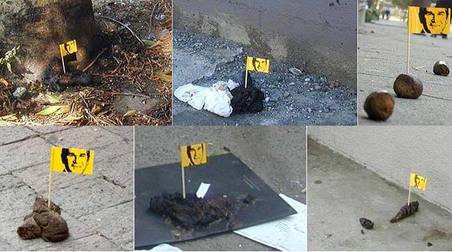 В Европе растет и ширится удивительный флэшмоб: в собачьи какашки на улицах втыкают флажок из зубочистки с изображением Дж.Буша. Первые случаи были зафиксированы полицией в немецком городе Bayreuth в январе 2005 г. С тех пор движение переросло границы Германии. Что таким образом хотят сказать участники акции, неизвестно. Возможно, они протестуют против войны в Ираке или чего-то еще. Изредка злоумышленников ловят за руку, они, как правило, отвечают, что это only as the makeyouthink, т.е. всего лишь дружеское предупреждение для прохожих, чтобы они не вляпались в дерьмо.