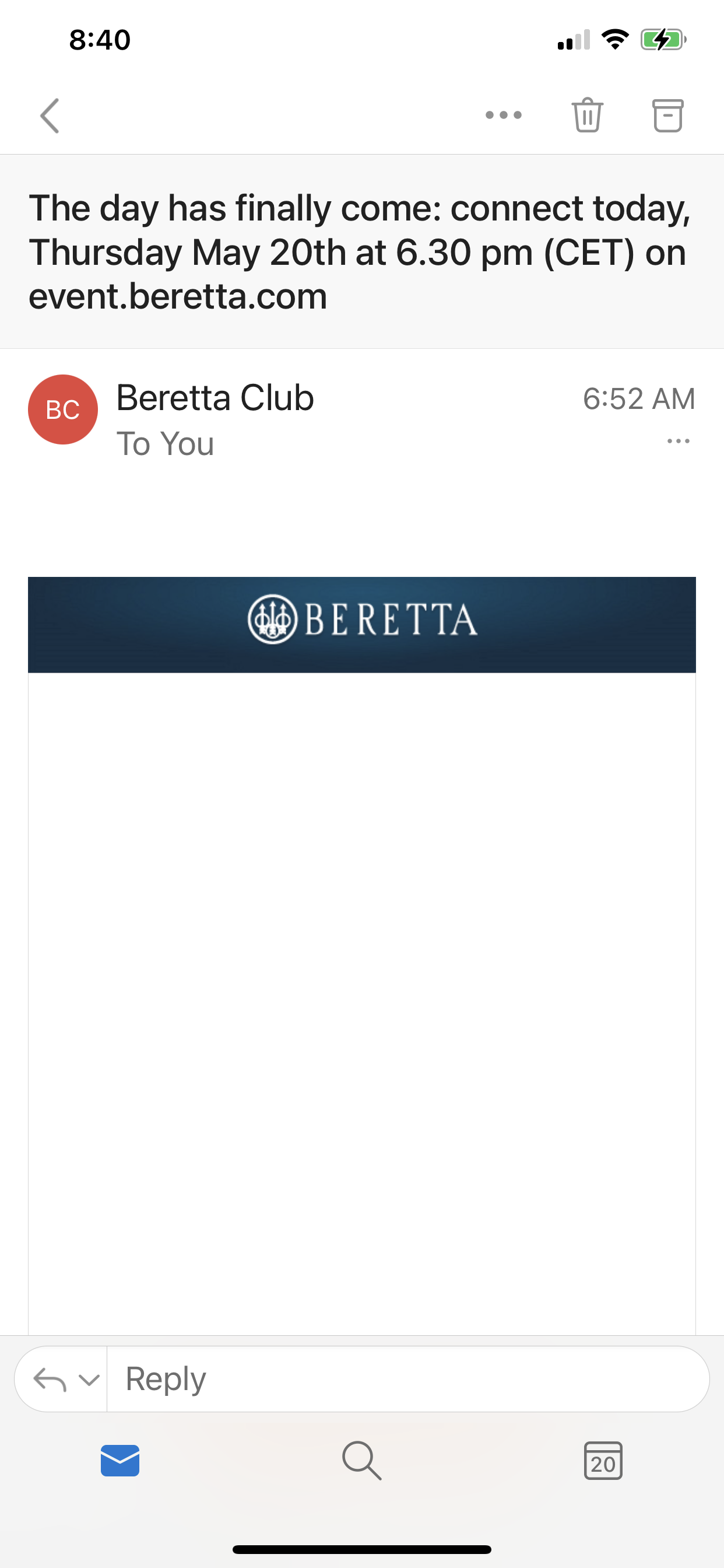 Beretta Event today at 6:30 pm (CET) May 20