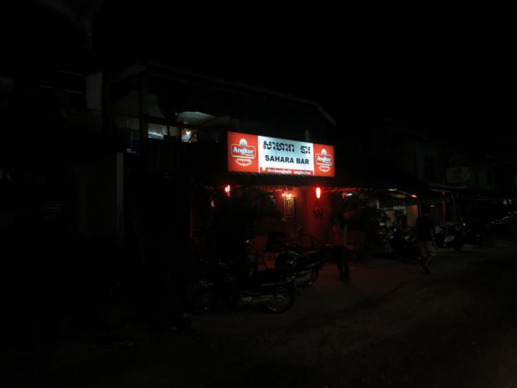 Пиво правда есть, официантка тоже, кхмерка лет 40, раньше когда то была наверно симпатичная  Потом подошел хозяин, Роланд, потрепались о том о сем, посетовал на низкий сезон. Мужик приветливый, разговорчивый, вполне приятный в общении. Но делать там дальше было нечего. Через дорогу - Апстея. Поднялся, зашел. Там совсем другое дело. Музыка играет, девки у бильярда крутятся, пару даже красивыми можно назвать. Но чет так бильярдом увлечены, а ко мне тут же подсела страшненькая толстенькая и давай за жизнь чесать. А я блин весь из себя воспитанный такой, послать не могу . Короче смог от нее избавиться только уходом из Апстеи. Иду дальше, осматриваюсь. Вот и Сахара.